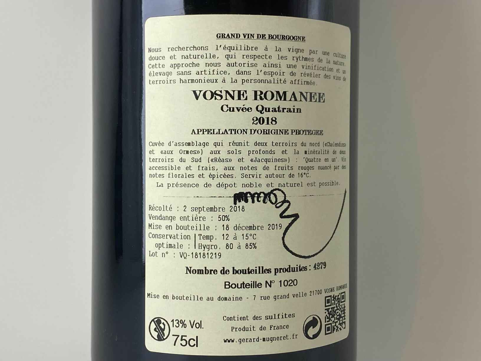 Gerard Mugneret, Vosne Romanee Cuvee Quatrain, 2018